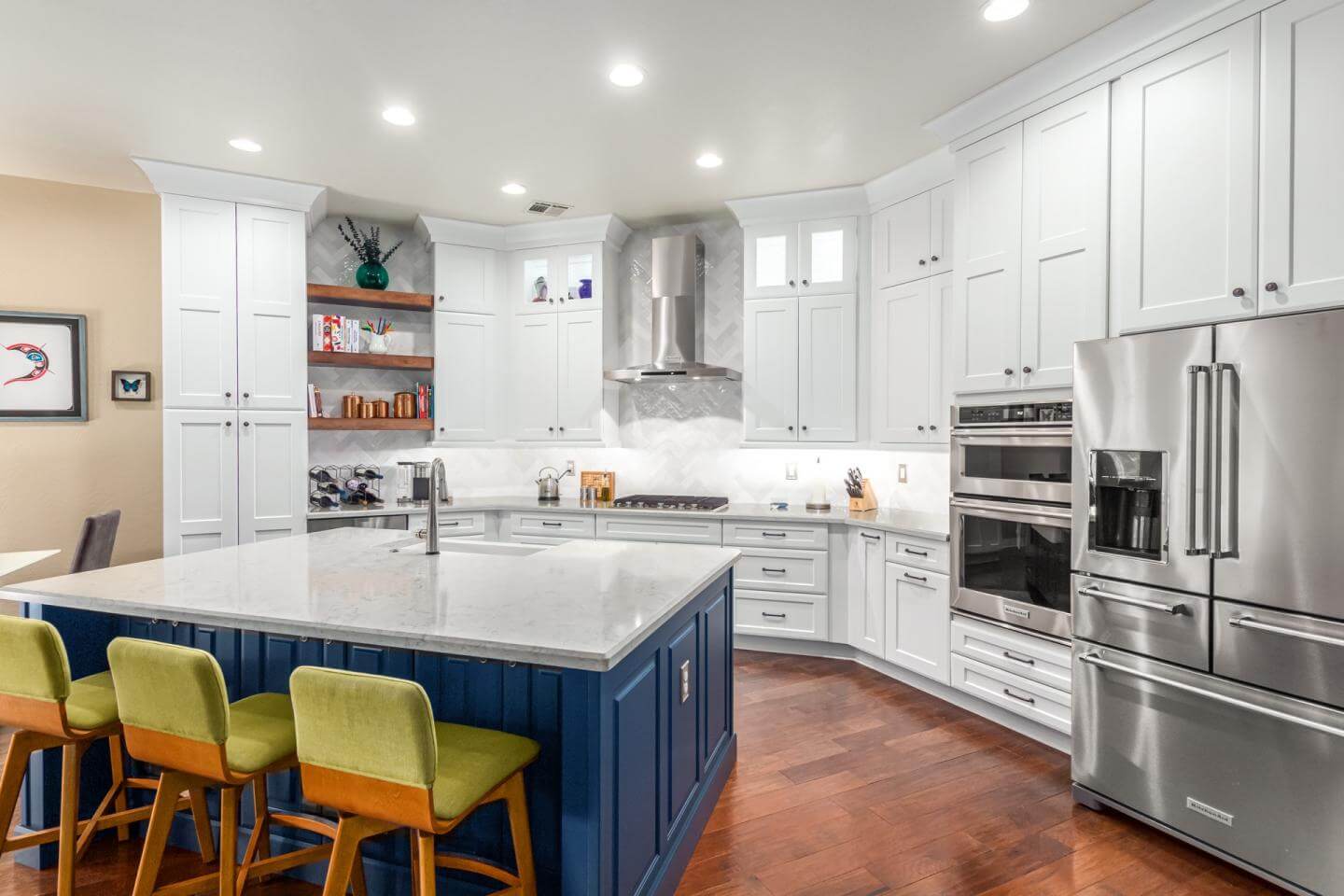 A transitional kitchen design combines traditional and contemporary styles. It is meant to transition your kitchen into a timeless kitchen design.